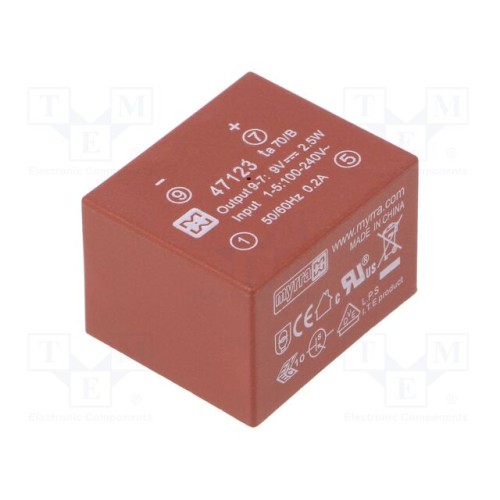 MYRRA 47123 | Перетворювач: AC/DC; 2,5Вт; Uвх: 85÷265ВAC,120÷370ВDC; Uвих: 9ВDC
