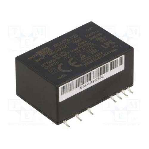 MEAN WELL IRM-02-12S | Перетворювач: AC/DC; 2Вт; Uвх: 85÷305ВAC,120÷430ВDC; Uвих: 12ВDC