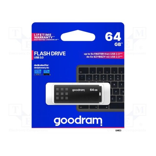 GOODRAM UME3-0640K0R11 | Флешка; USB 3.0; 64ГБ; R: 60МБ/с; W: 20МБ/с; чорний; USB A