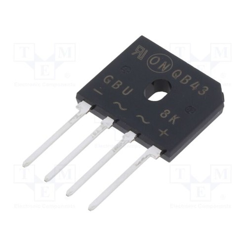 ONSEMI GBU8K | Випрямний міст: однофазний; Urmax: 800В; If: 8А; Ifsm: 200А; плоский