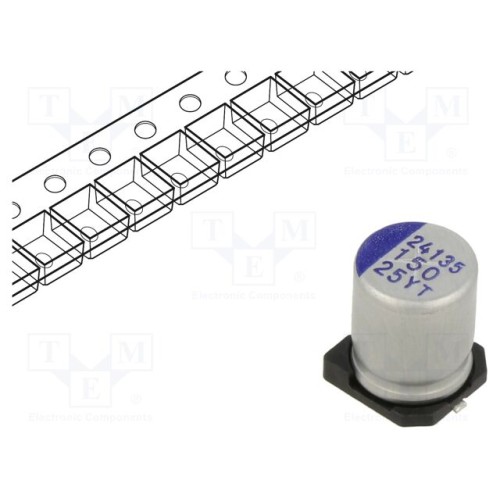 SAMWHA YT1E157M08010VR | Конденсатор: гибридний; -55÷150°C; 150мкФ; 25ВDC; SMD; Ø8x10мм