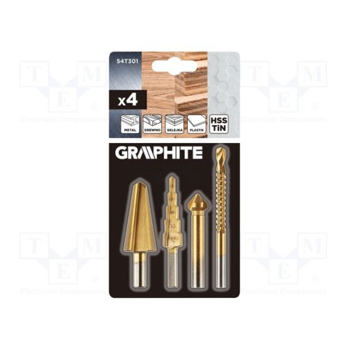 GRAPHITE 54T301 | Набір свердел; ступінчасте,конічні; Ø: 4÷12мм; 4шт.