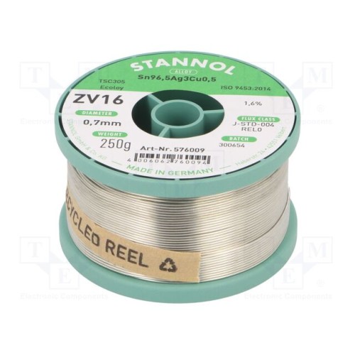 STANNOL 576009 | Олово; не містить свинцю; Sn96,5Ag3Cu0,5; 0,7мм; 250г; котушка