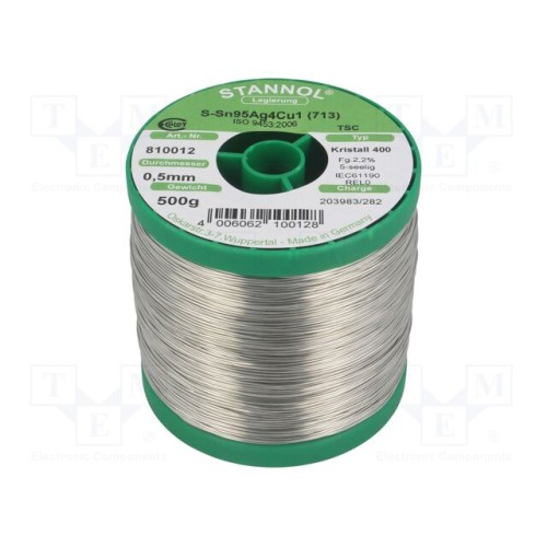 STANNOL 810012 | Олово; не містить свинцю; Sn95,5Ag3,8Cu0,7; 500мкм; 0,5кг; 217°C
