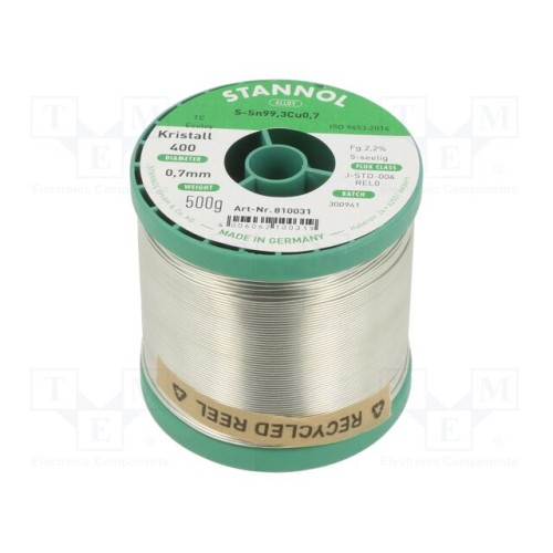 STANNOL 810031 | Олово; не містить свинцю; Sn99,3Cu0,7; 700мкм; 0,5кг; котушка