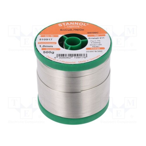STANNOL 810917 | Олово; не містить свинцю; Sn99,3Cu0,7+NiGe; 1мм; 0,5кг; котушка