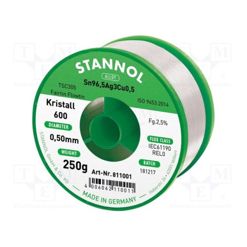 STANNOL 811001 | Олово; не містить свинцю; Sn96,5Ag3Cu0,5; 0,5мм; 250г; котушка
