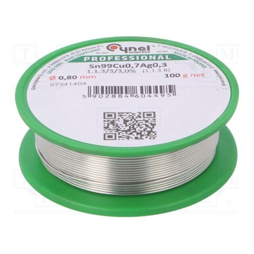 CYNEL SAC0307 0.80 100G | Олово; не містить свинцю; Sn99Ag0,3Cu0,7; 0,8мм; 100г; котушка