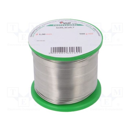 CYNEL SN99,3CU0,7-BT 1.00 500G | Олово; не містить свинцю; Sn99,3Cu0,7; 1мм; 500г; котушка; 227°C