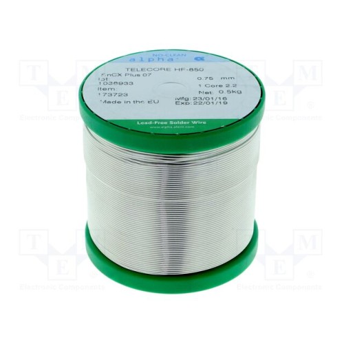 ALPHA TELECORE HF-850 SNCX PLUS 07 0,75MM | Олово; не містить свинцю; Sn99,3Cu0,7; 0,75мм; 0,5кг; котушка