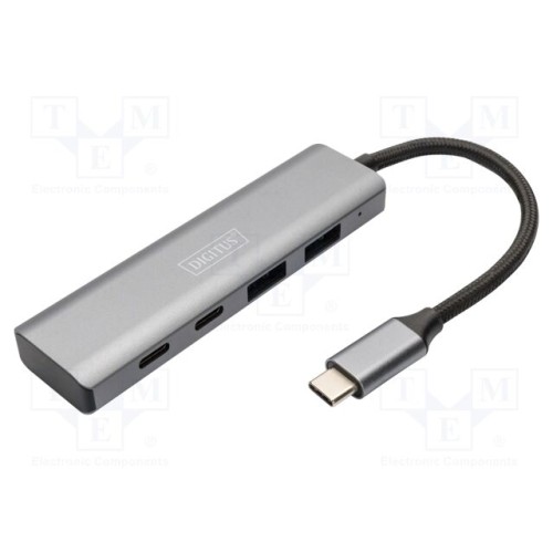 DIGITUS DA-70245 | Hub USB; USB A гніздо x2,USB C гніздо x2,контакт USB C; сірий