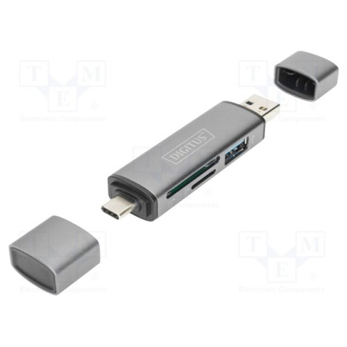 DIGITUS DA-70886 | Зчитувач карт: пам\'яті; USB A гніздо,USB А вилка,контакт USB C