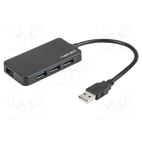 NATEC NHU-1342 | Hub USB; USB A гніздо x4,USB А вилка; USB 3.0; PnP; чорний; 0,15м