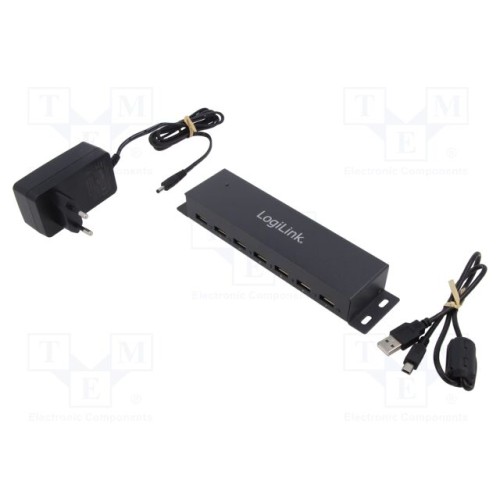 LOGILINK UA0148 | Hub USB; DC,USB A гніздо x7,USB B mini гніздо; USB 2.0; метал