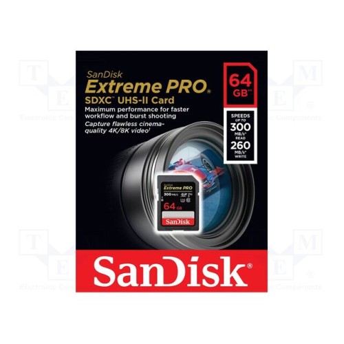 SANDISK SDSDXDK-064G-GN4IN | Карта пам\'яті; Extreme Pro; SDXC; R: 300МБ/с; W: 260МБ/с; 64ГБ