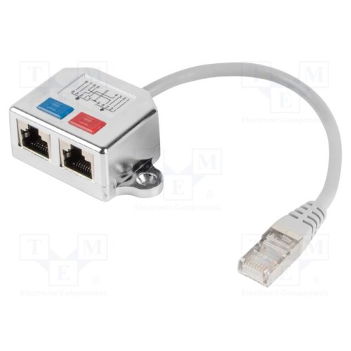LANBERG AD-0026-S | Розгалуджувач; срібний; Кат: 5e; гніздо RJ45 x2,RJ45 вилка x1