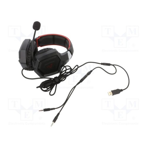 SAVIO FORGE | Навушники з мікрофоном; чорний,червоний; Jack 3,5 мм,USB A