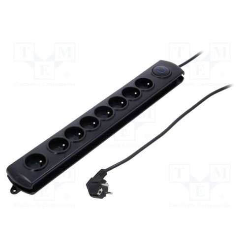 QOLTEC 50114 | Мережевий фільтр: захисний; Гнізда: 8; 250ВAC; 10А; чорний