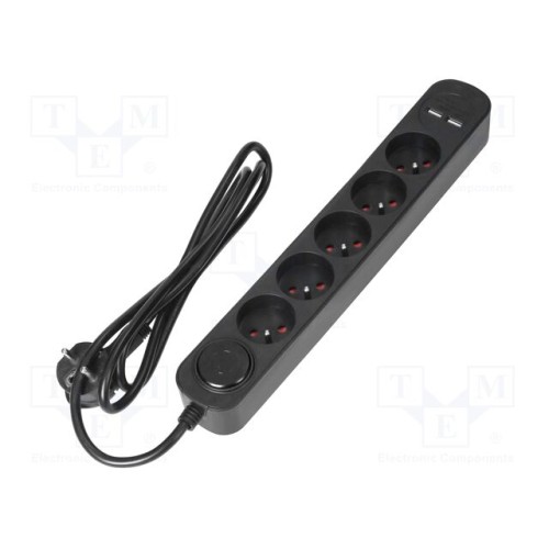 VIRONE PS-2/B/1,5M | Мережевий фільтр: захисний; Гнізда: 5; 230ВAC; 10А; чорний; IP20
