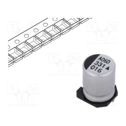 KYOCERA AVX AEA0810331M016R | Конденсатор: електролітичний; SMD; 330мкФ; 16ВDC; Ø8x10,5мм; 5000г