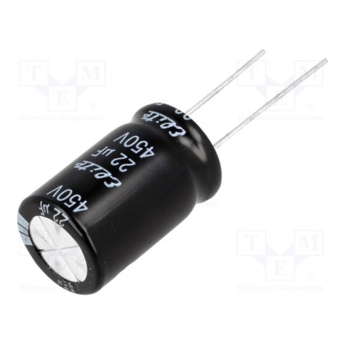 Elite PF2W220MNN1625 | Конденсатор: електролітичний; THT; 22мкФ; 450ВDC; Ø16x25мм; ±20%