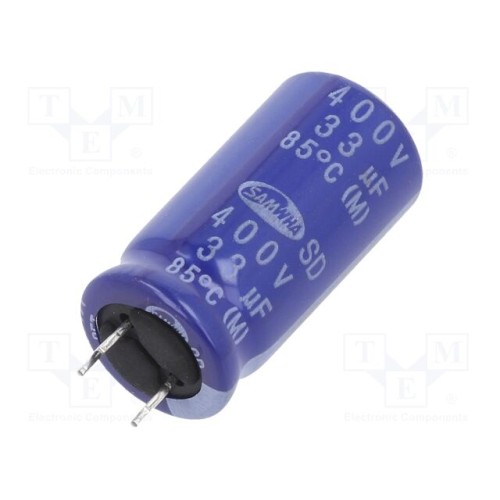 SAMWHA SD2G336M12025SS | Конденсатор: електролітичний; THT; 33мкФ; 400ВDC; Ø12,5x25мм; ±20%