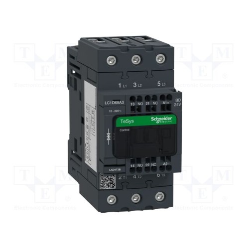 SCHNEIDER ELECTRIC LC1D65A3BD | Контактор: 3-полюсний; NO x3; Допоміжні контакти: NC + NO; 24ВDC