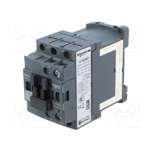 SCHNEIDER ELECTRIC LC1E2501BD | Контактор: 3-полюсний; NO x3; Допоміжні контакти: NC; 24ВDC; 25А