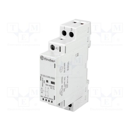 FINDER 22.32.0.230.4320 | Контактор: 2-полюсний встановлювальний; 25А; 230ВAC,230ВDC; IP20