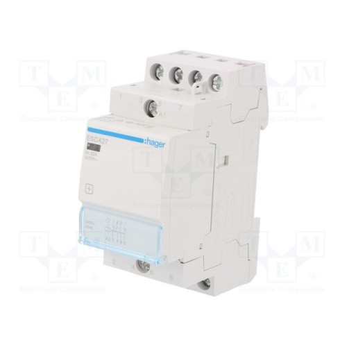 HAGER ESC427 | Контактор: 4-полюсний встановлювальний; 25А; 230ВAC; на шину DIN
