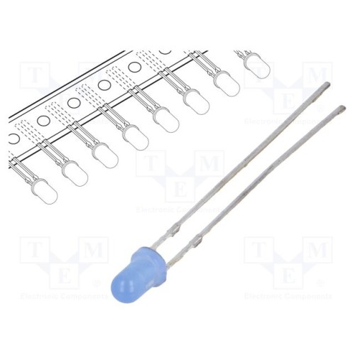 OPTOSUPPLY OSB5YU3144A-T-HI | LED; синій; 3мм; 500мкд; 40°; Голівка: опукла; 2,9÷3,6ВDC; Ammo Pack