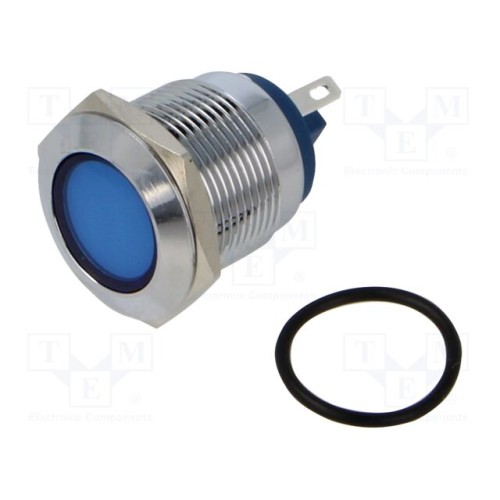 NINIGI IND19-12B-C | Індикатор: LED; плоска; синій; 12ВDC; 12ВAC; Ø19мм; конектори