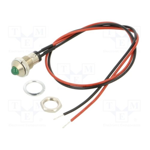 BIVAR MPC5GDW12.0 | Індикатор: LED; опукла; зелений; 2,1ВDC; Ø8мм; MPC; проводи; 300мм