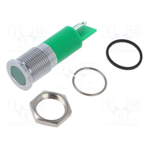 APEM Q14F1CXXG24E | Індикатор: LED; плоска; зелений; Ø14мм; IP67; Q14; латунь; ØLED: 10мм