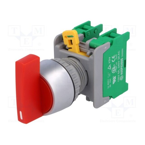 AUSPICIOUS LRS22-2/O R,1->0<-2 SPRING RETURN | Перемикач: поворотний; 22мм; Фікс.поз: 1; NO x2; червоний; немає