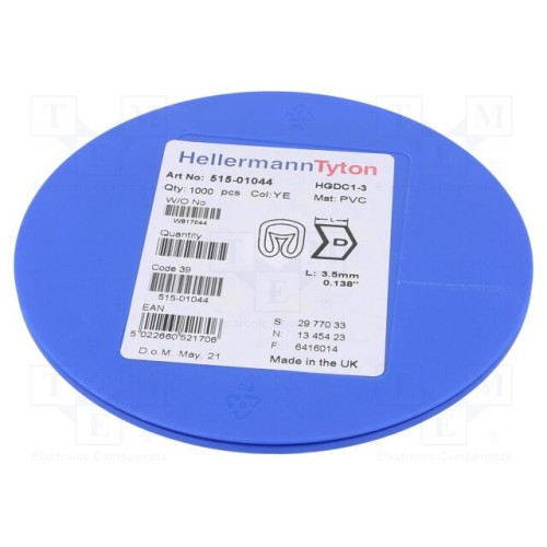 HELLERMANNTYTON 515-01044 | Маркери; Маркування: D; 1÷3мм; ПВХ; жовтий; -65÷105°C; HGDC1-3