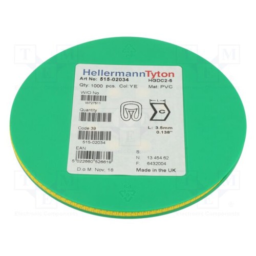 HELLERMANNTYTON 515-02034 | Маркери; Маркування: C; 2÷5мм; ПВХ; жовтий; -65÷105°C; HGDC2-5