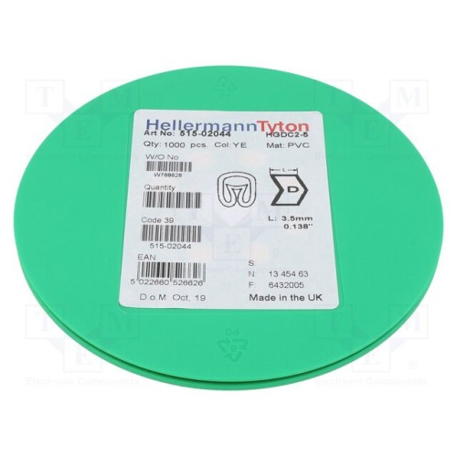 HELLERMANNTYTON 515-02044 | Маркери; Маркування: D; 2÷5мм; ПВХ; жовтий; -65÷105°C; HGDC2-5