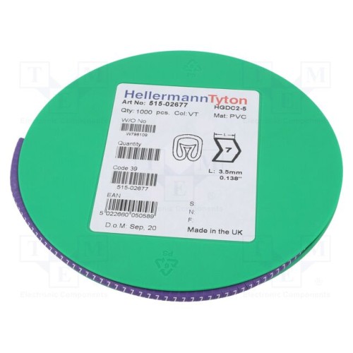 HELLERMANNTYTON 515-02677 | Маркери; Маркування: 7; 2÷5мм; ПВХ; фіолетовий; -65÷105°C; HGDC2-5