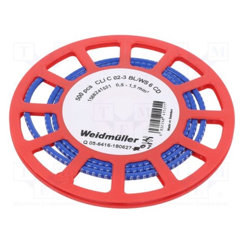 WEIDMÜLLER CLI C 02-3 BL/WS 6 CD | Маркери; Маркування: 6; 1,3÷3мм; ПВХ; синій; -30÷80°C; CLI C; H: 3мм