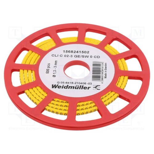 WEIDMÜLLER CLI C 02-3 GE/SW 0 CD | Маркери; Маркування: 0; 1,3÷3мм; ПВХ; жовтий; -30÷80°C; CLI C; H: 3мм