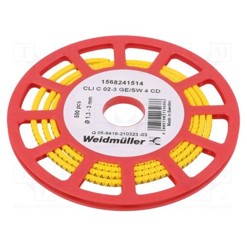 WEIDMÜLLER CLI C 02-3 GE/SW 4 CD | Маркери; Маркування: 4; 1,3÷3мм; ПВХ; жовтий; -30÷80°C; CLI C; H: 3мм