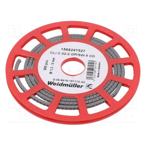 WEIDMÜLLER CLI C 02-3 GR/SW 8 CD | Маркери; Маркування: 8; 1,3÷3мм; ПВХ; сірий; -30÷80°C; CLI C; H: 3мм