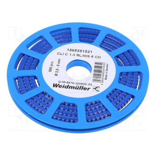 WEIDMÜLLER CLI C 1-3 BL/WS 6 CD | Маркери; Маркування: 6; 2,5÷5мм; ПВХ; синій; -30÷80°C; CLI C; H: 3мм