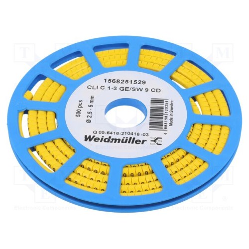 WEIDMÜLLER CLI C 1-3 GE/SW 9 CD | Маркери; Маркування: 9; 2,5÷5мм; ПВХ; жовтий; -30÷80°C; CLI C; H: 3мм