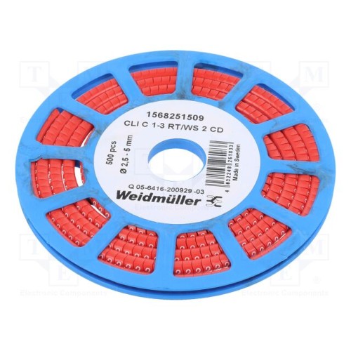 WEIDMÜLLER CLI C 1-3 RT/SW 2 CD | Маркери; Маркування: 2; 2,5÷5мм; ПВХ; червоний; -30÷80°C; CLI C