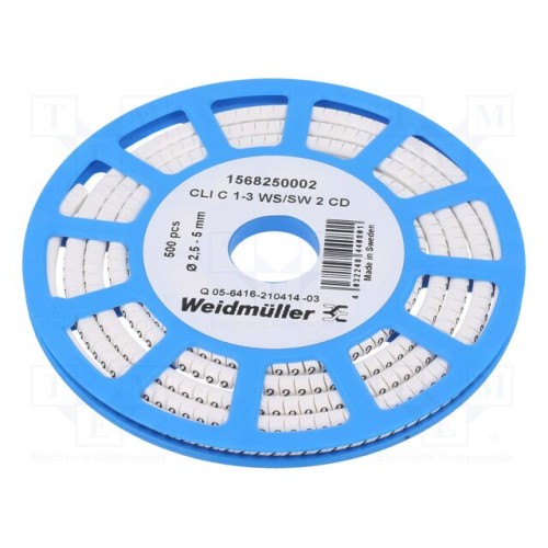 WEIDMÜLLER CLI C 1-3 WS/SW 2 CD | Маркери; Маркування: 2; 2,5÷5мм; ПВХ; білий; -30÷80°C; CLI C; H: 3мм
