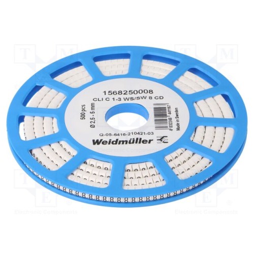 WEIDMÜLLER CLI C 1-3 WS/SW 8 CD | Маркери; Маркування: 8; 2,5÷5мм; ПВХ; білий; -30÷80°C; CLI C; H: 3мм