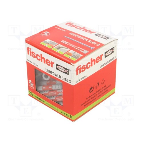 FISCHER 538246 | Plastic anchor; with screw; 8x65; DUOPOWER; 25pcs; 8mm