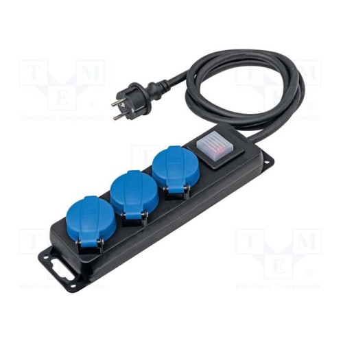 AS SCHWABE 38630 | Мережевий подовжувач; 3G2,5мм2; з кришкою; Гнізда: 3; гума; чорний
